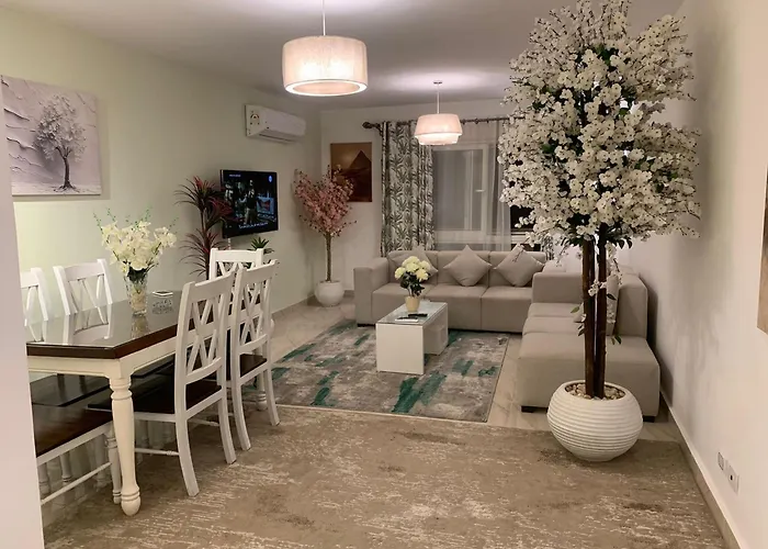 The 155 m² apartment is approximately 10 minutes by car from Masjed Amr ibn al-'As and Cairo International airport is 39 minutes’ drive away.
